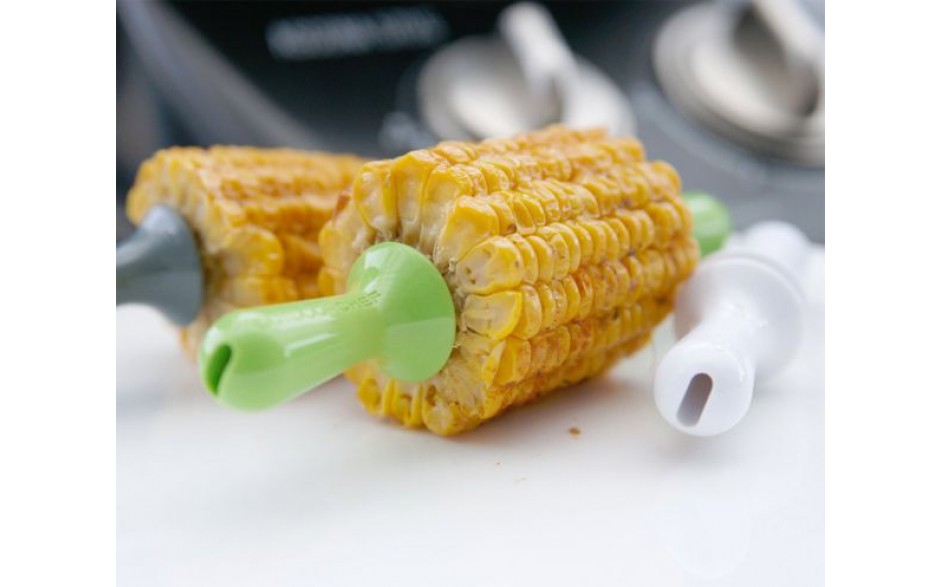 Damit wird das Maiskolbenessen eine runde Sache: 3 Halter in OUTDOORCHEF Farben mit cleverem Verriegelungsmechanismus zur sicheren Lagerung. Langlebige Edelstahlstifte.